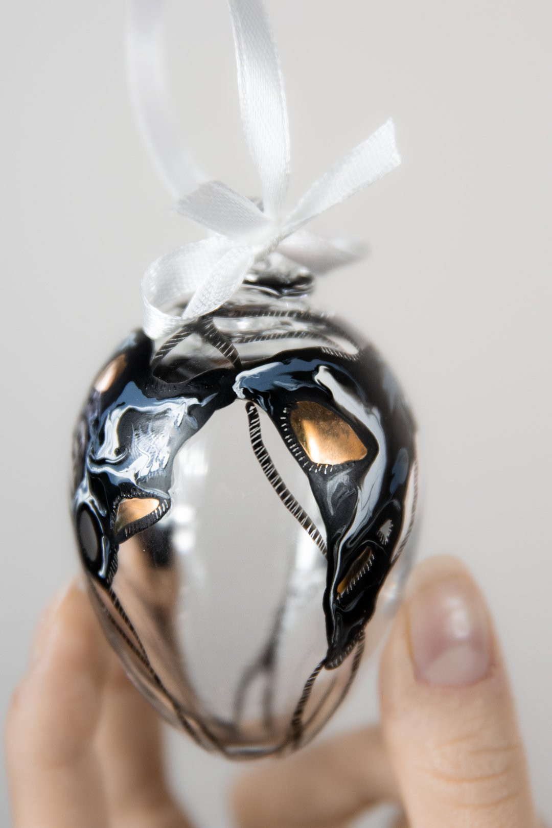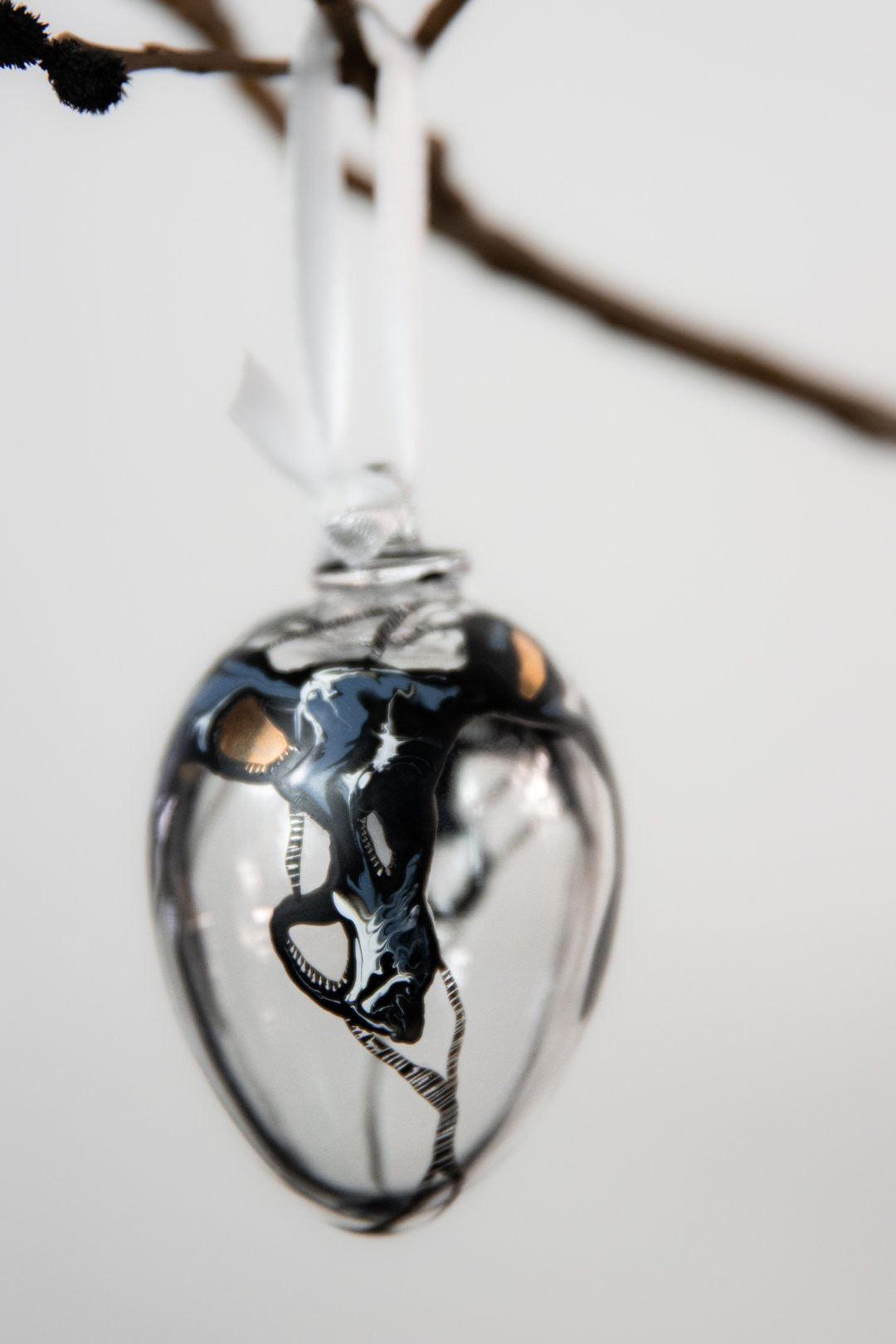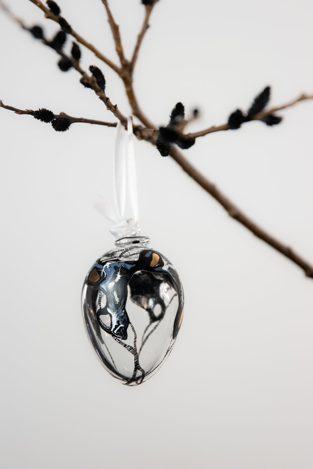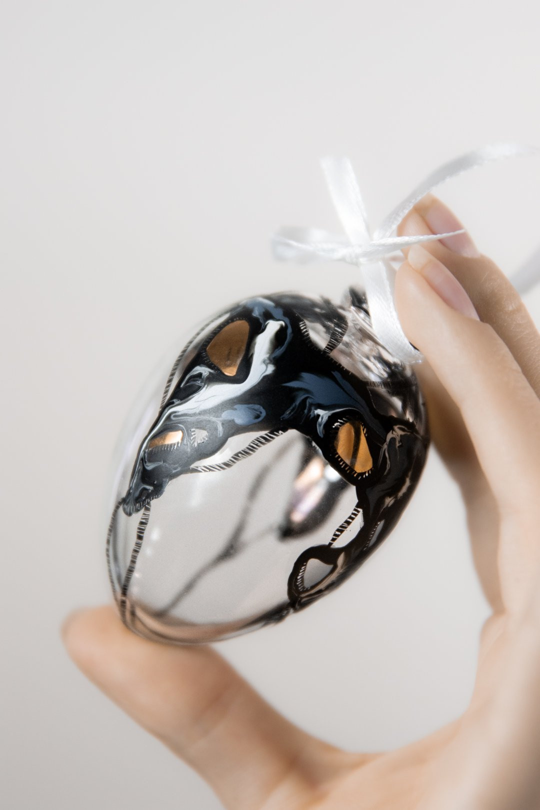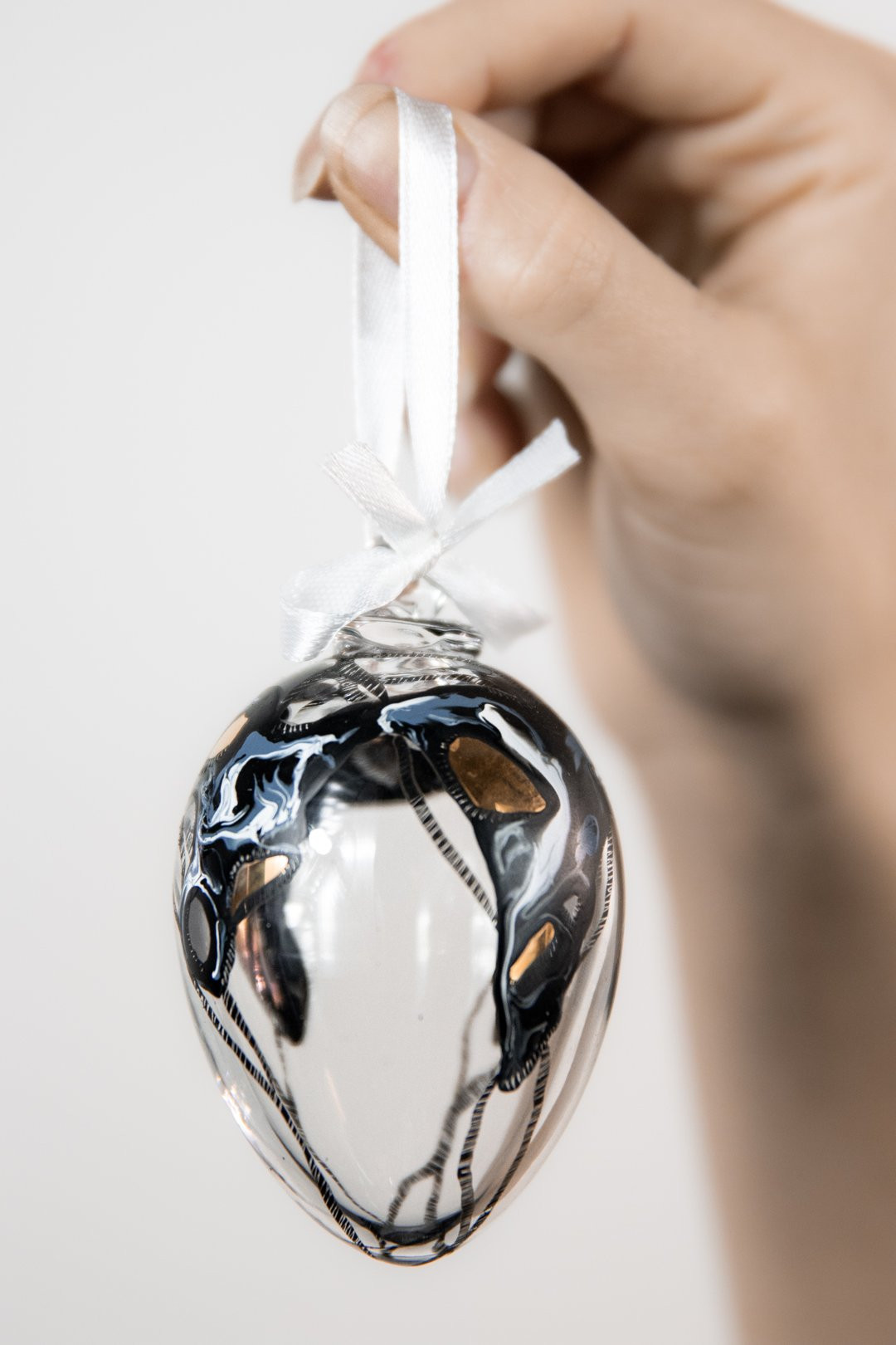 Welcome spring with Czech hand-blown glass eggs. Decorate your home with the unusual, hand-painted Covenant egg. The egg is adorned with pure gold embraced by several colours. Give your home a touch of something truly special.