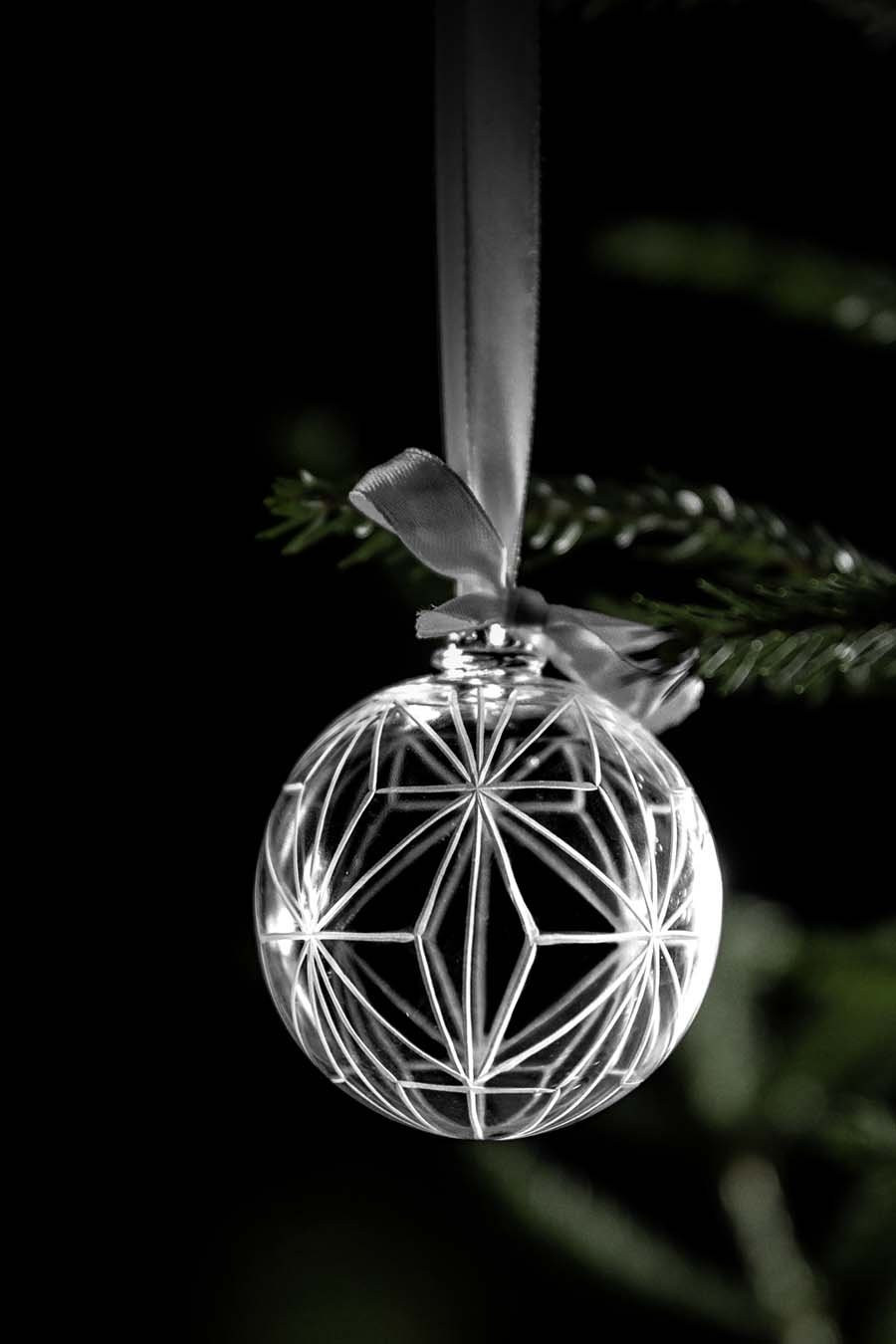 Glory, with its nearly geometric design, features a motif of stars that are inseparable from Christmas. Fall under the spell of Christmas with hand-engraved elegance adorning your tree.