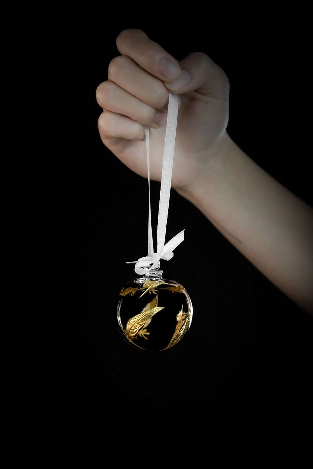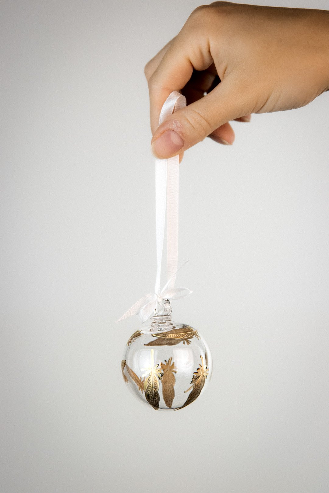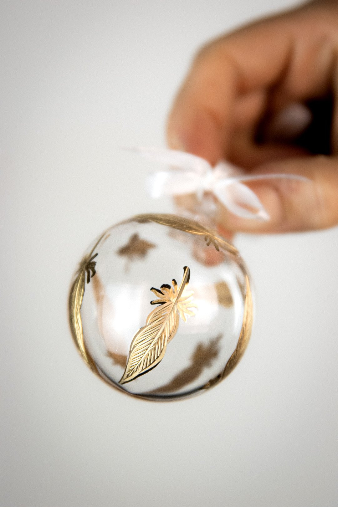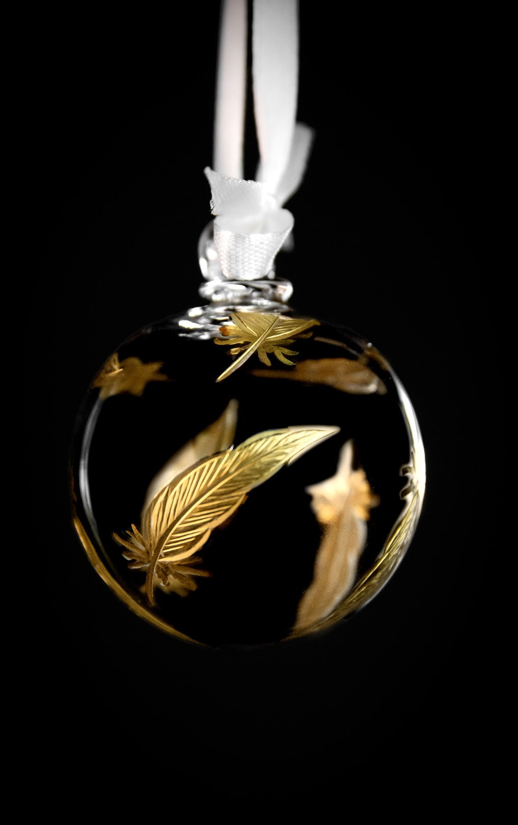 Elegant, enchanting, and in the color of a Christmas treasure — this is the Feathers Gold crystal ornament created according to your wishes. Hand-engraved feathers with genuine gold make a perfect addition to your Christmas tree.