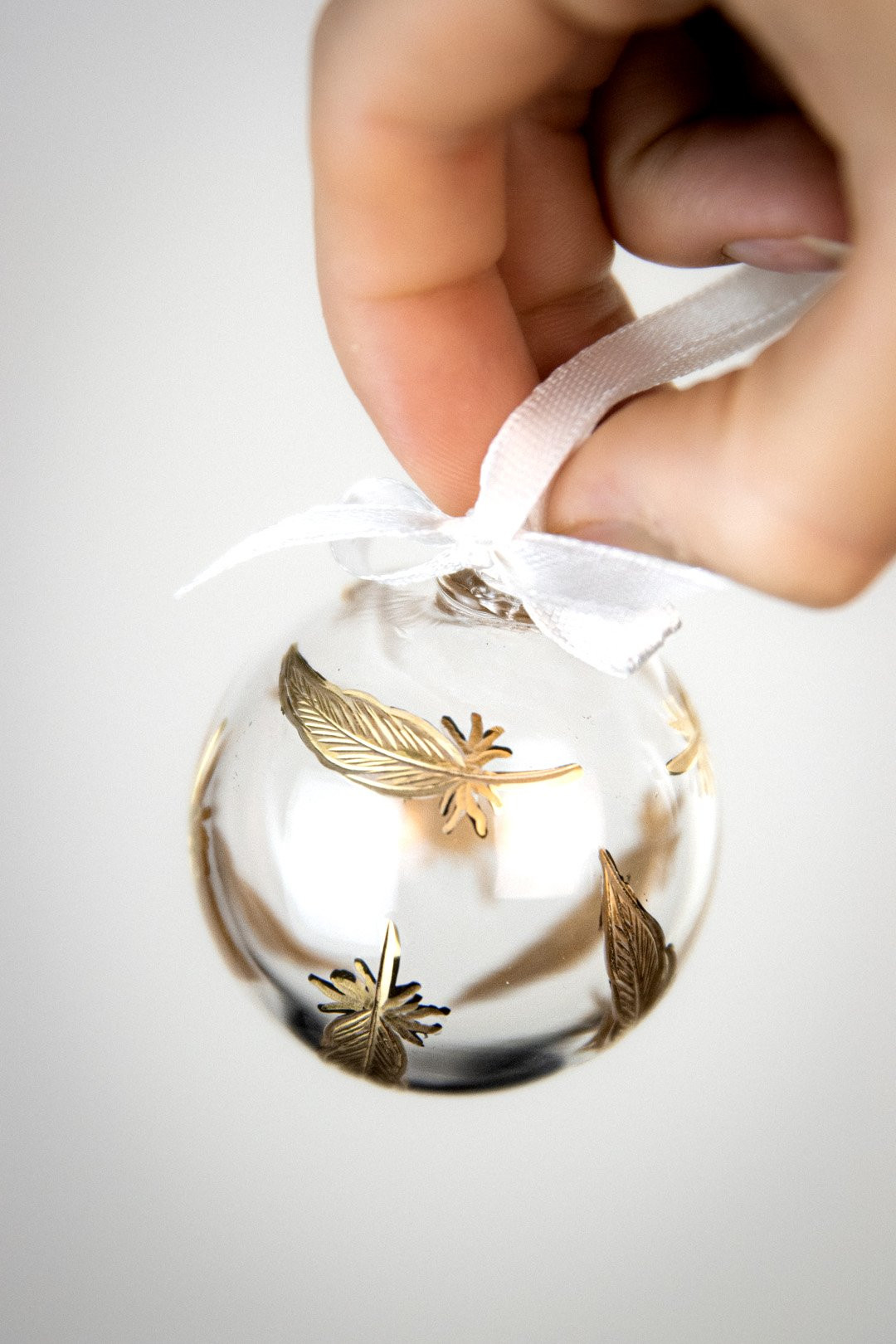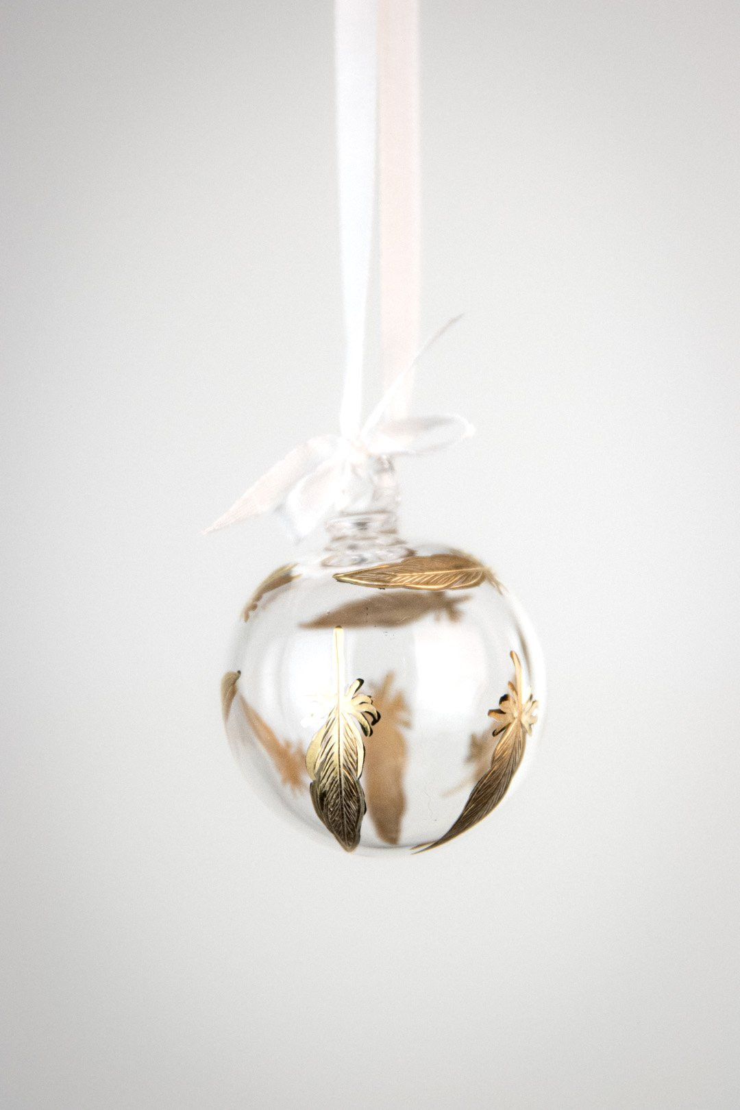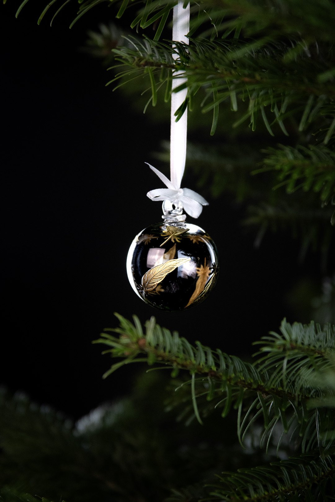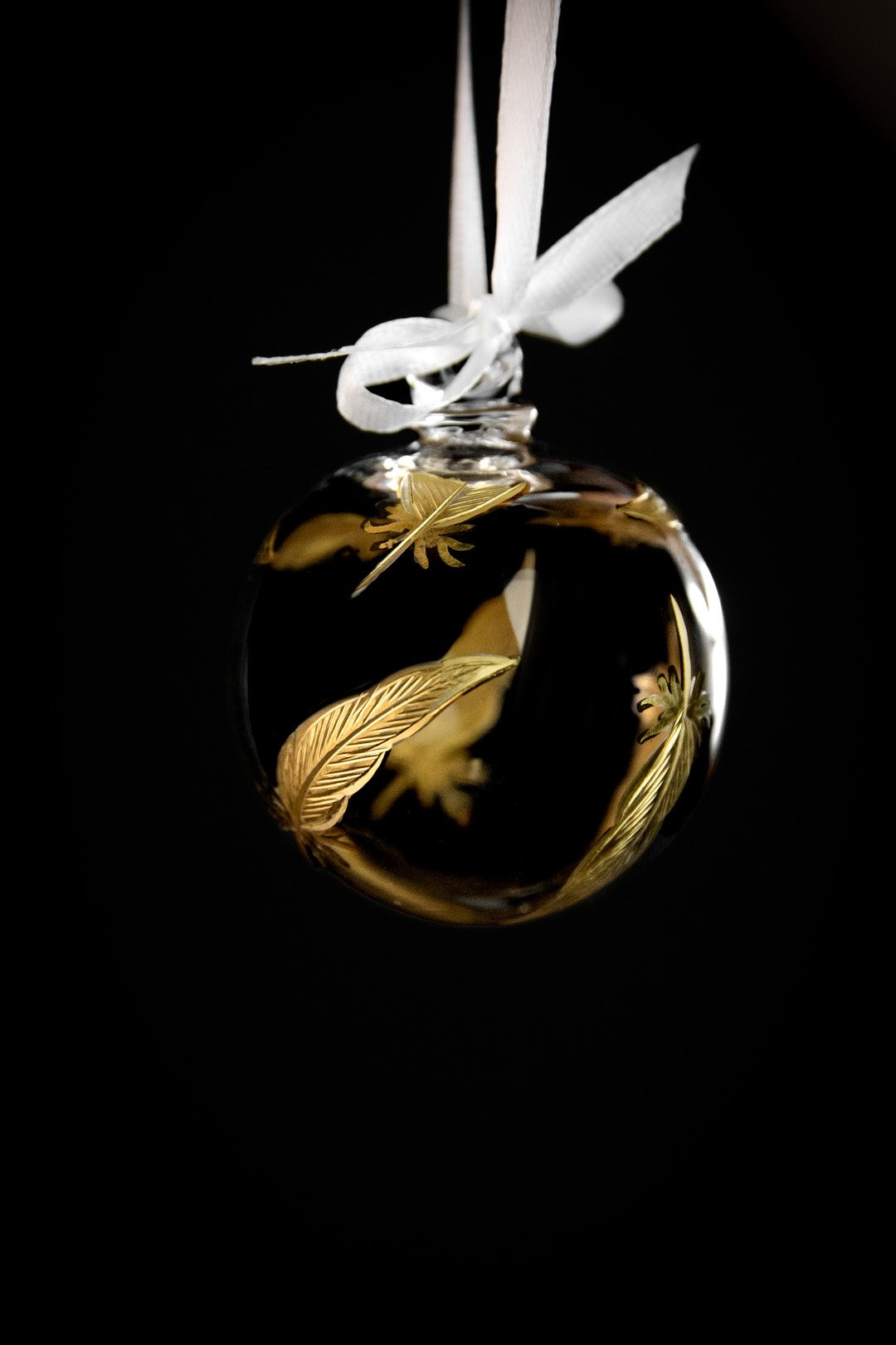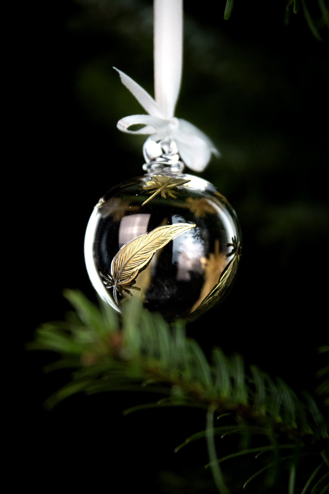 Elegant, enchanting, and in the color of a Christmas treasure — this is the Feathers Gold crystal ornament created according to your wishes. Hand-engraved feathers with genuine gold make a perfect addition to your Christmas tree.
