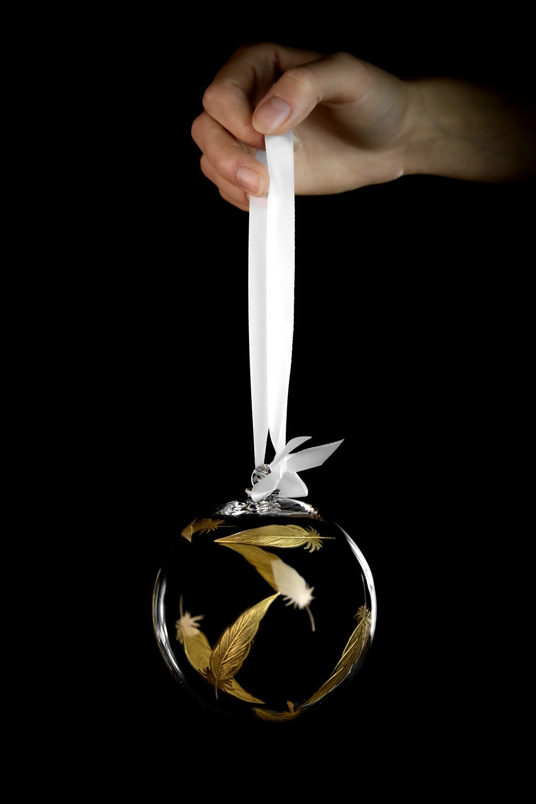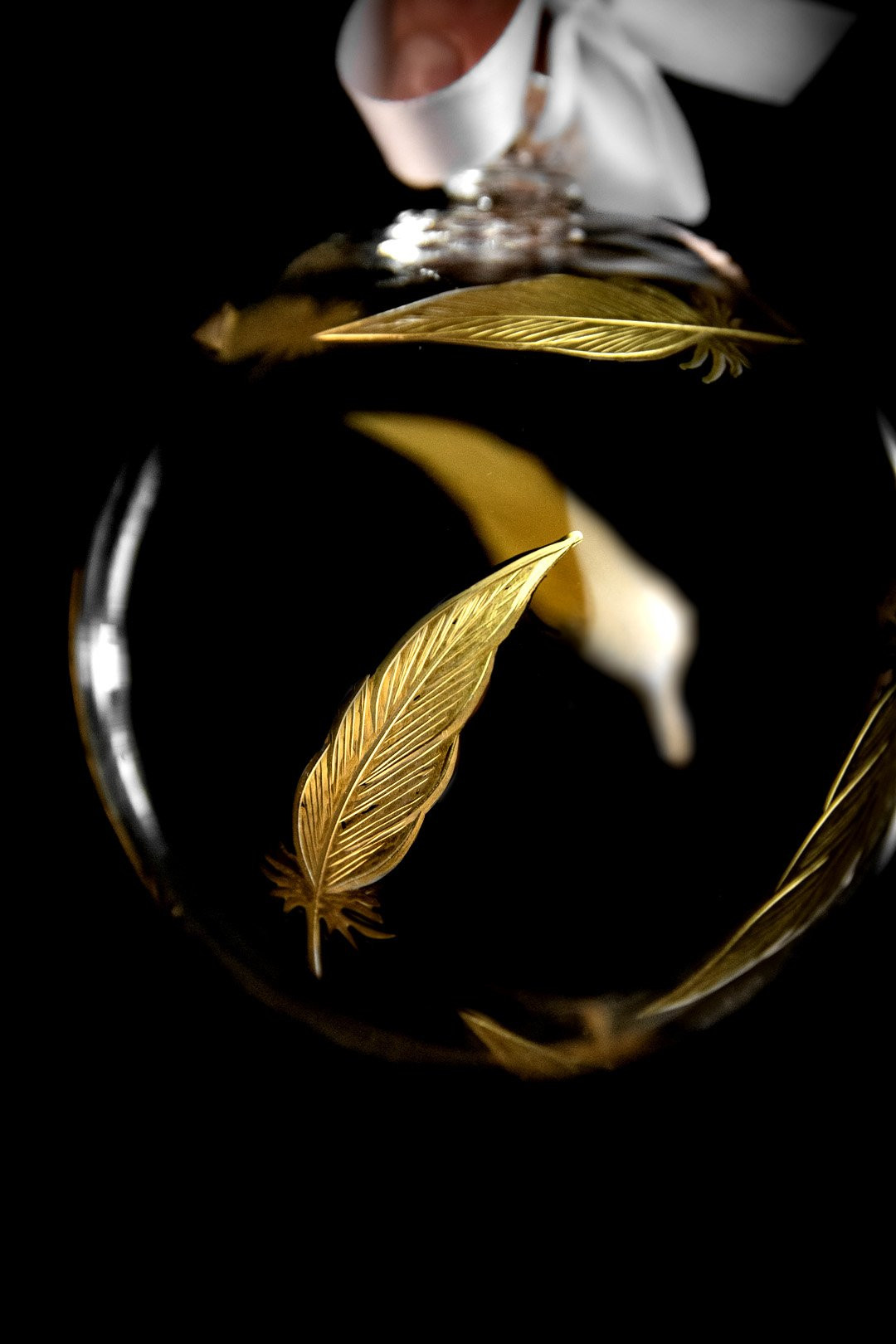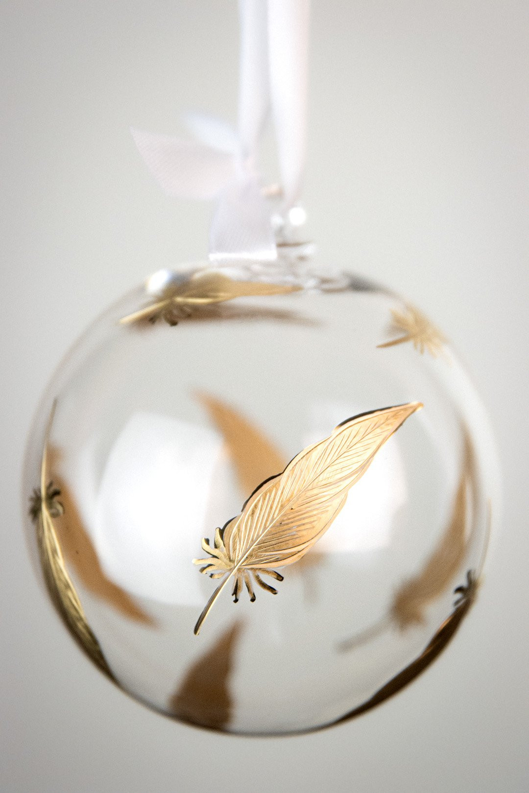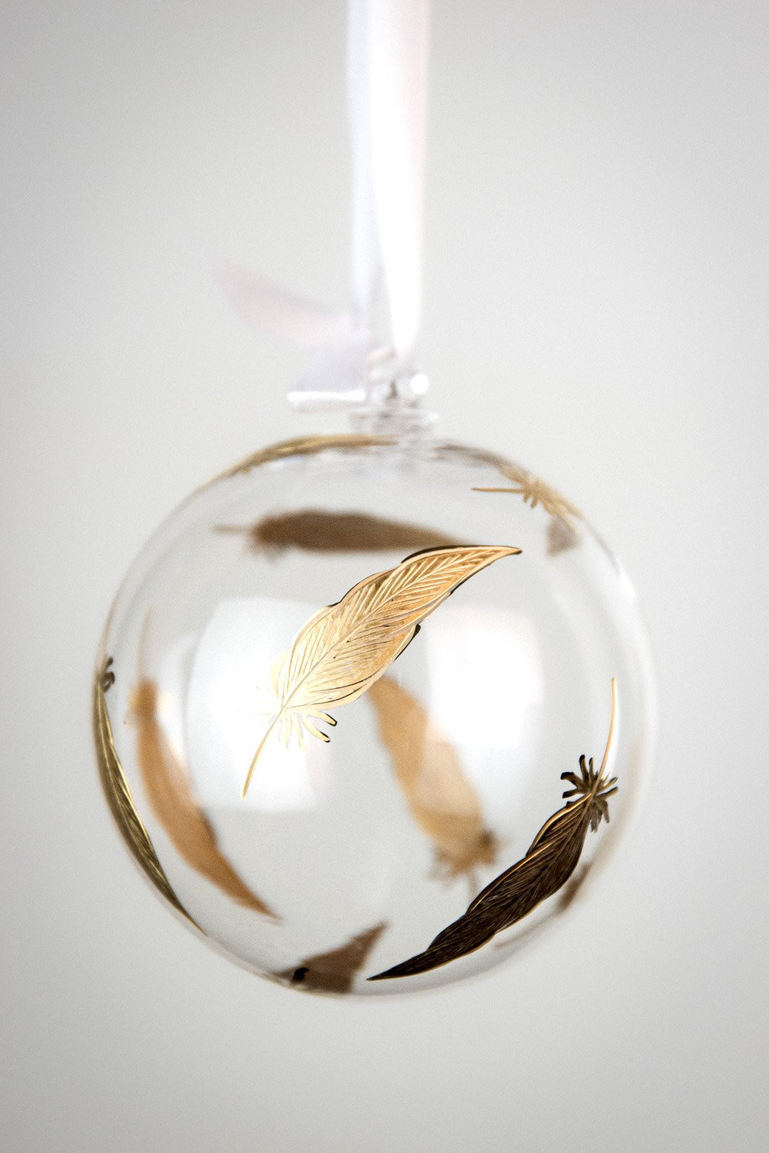 Elegant, enchanting, and in the color of a Christmas treasure — this is the Feathers Gold crystal ornament created according to your wishes. Hand-engraved feathers with genuine gold make a perfect addition to your Christmas tree.