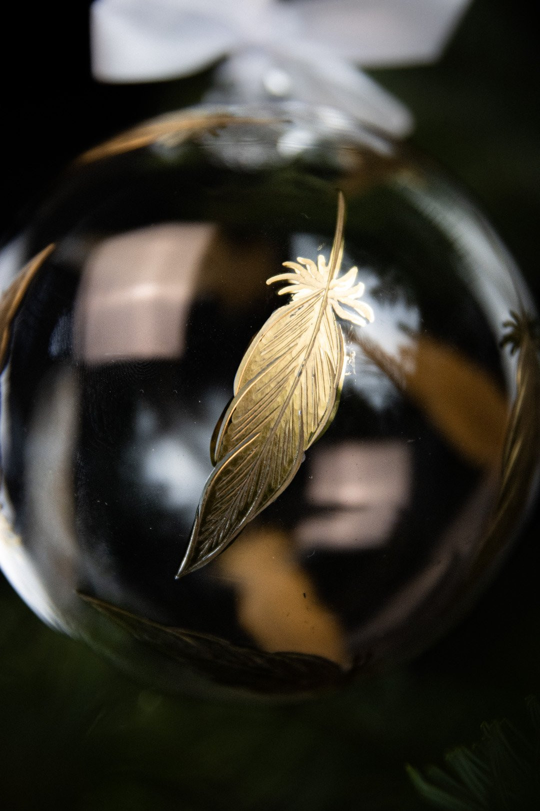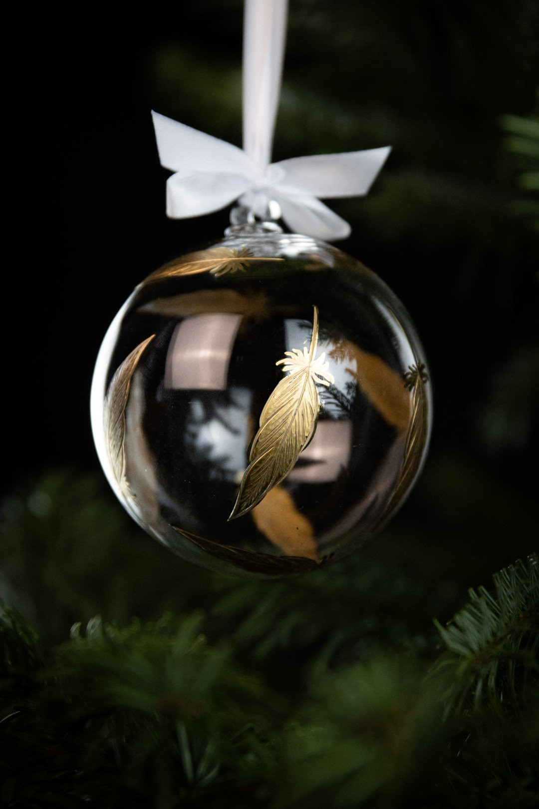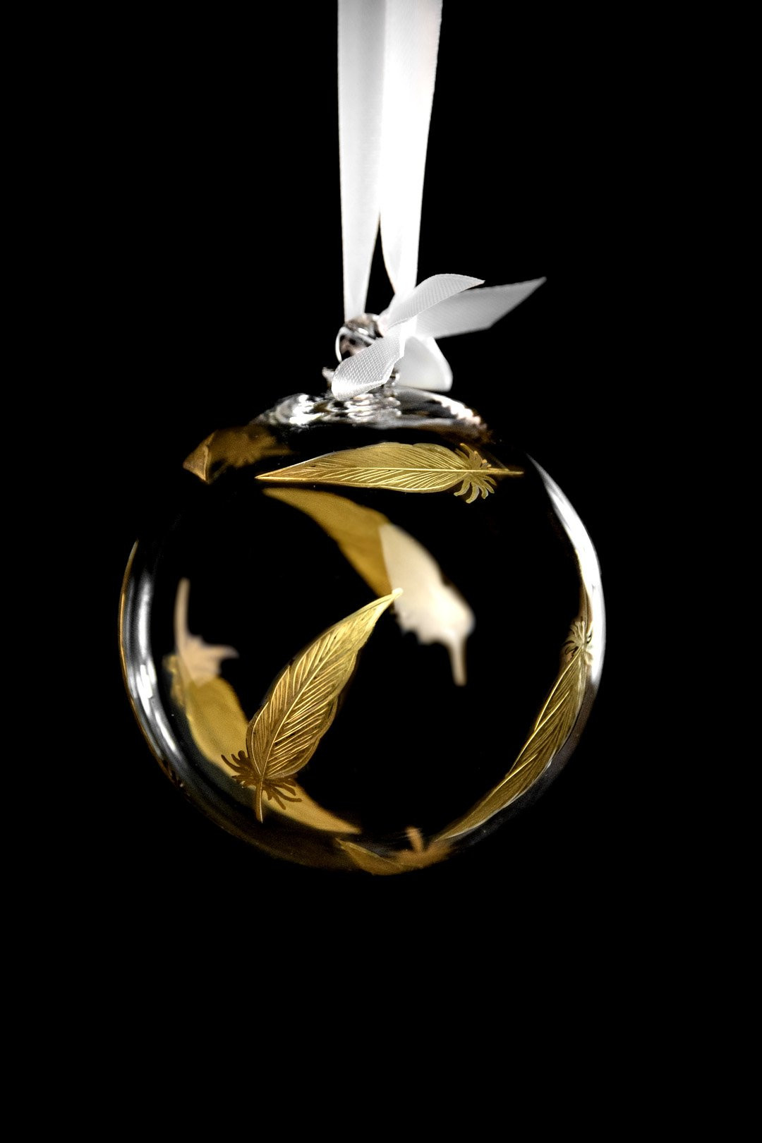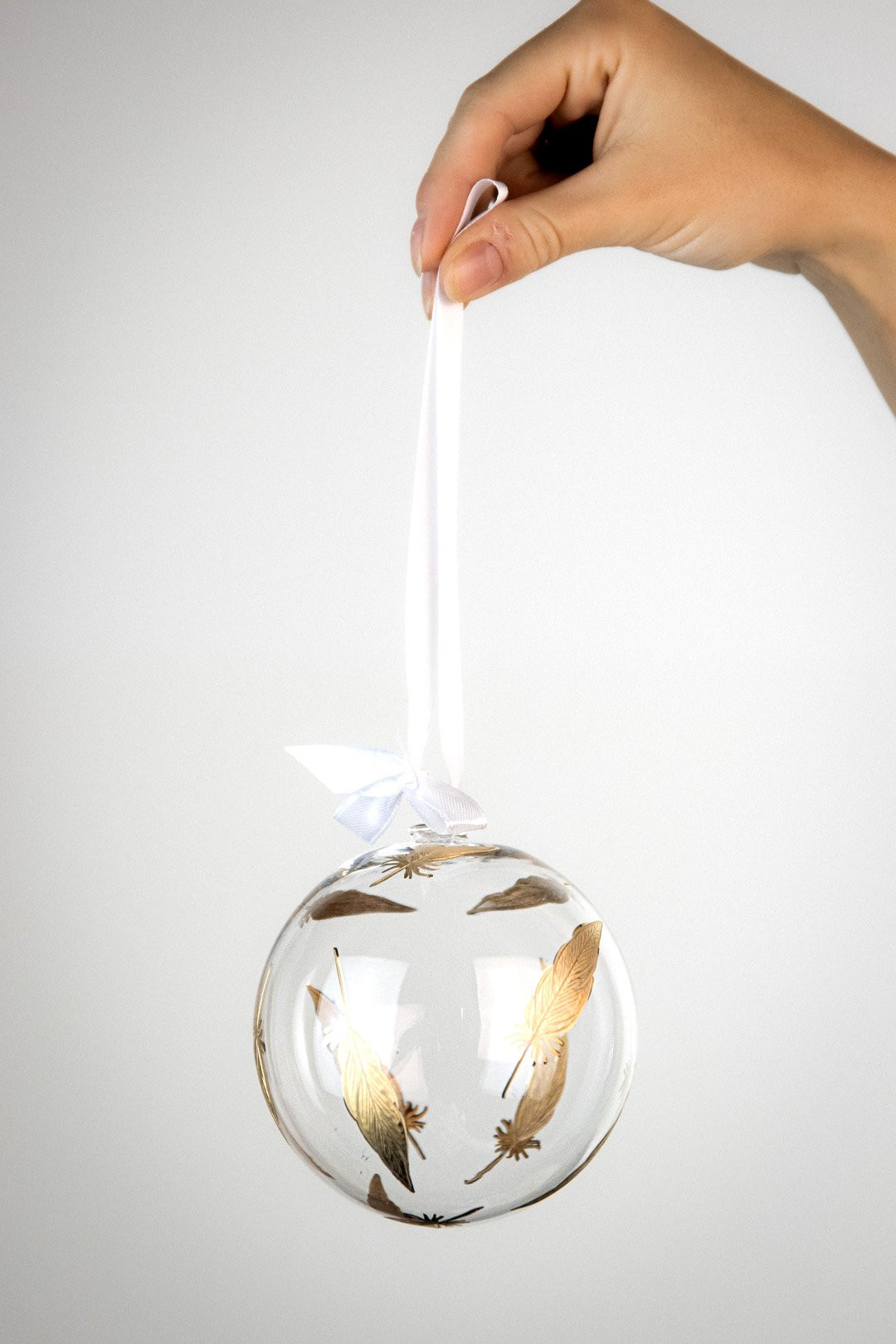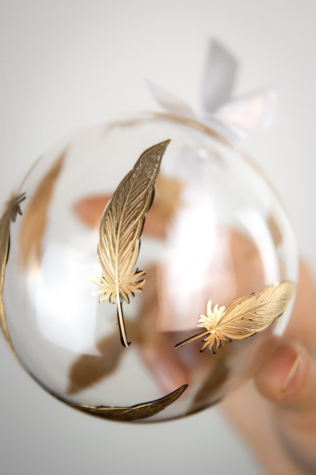 Elegant, enchanting, and in the color of a Christmas treasure — this is the Feathers Gold crystal ornament created according to your wishes. Hand-engraved feathers with genuine gold make a perfect addition to your Christmas tree.