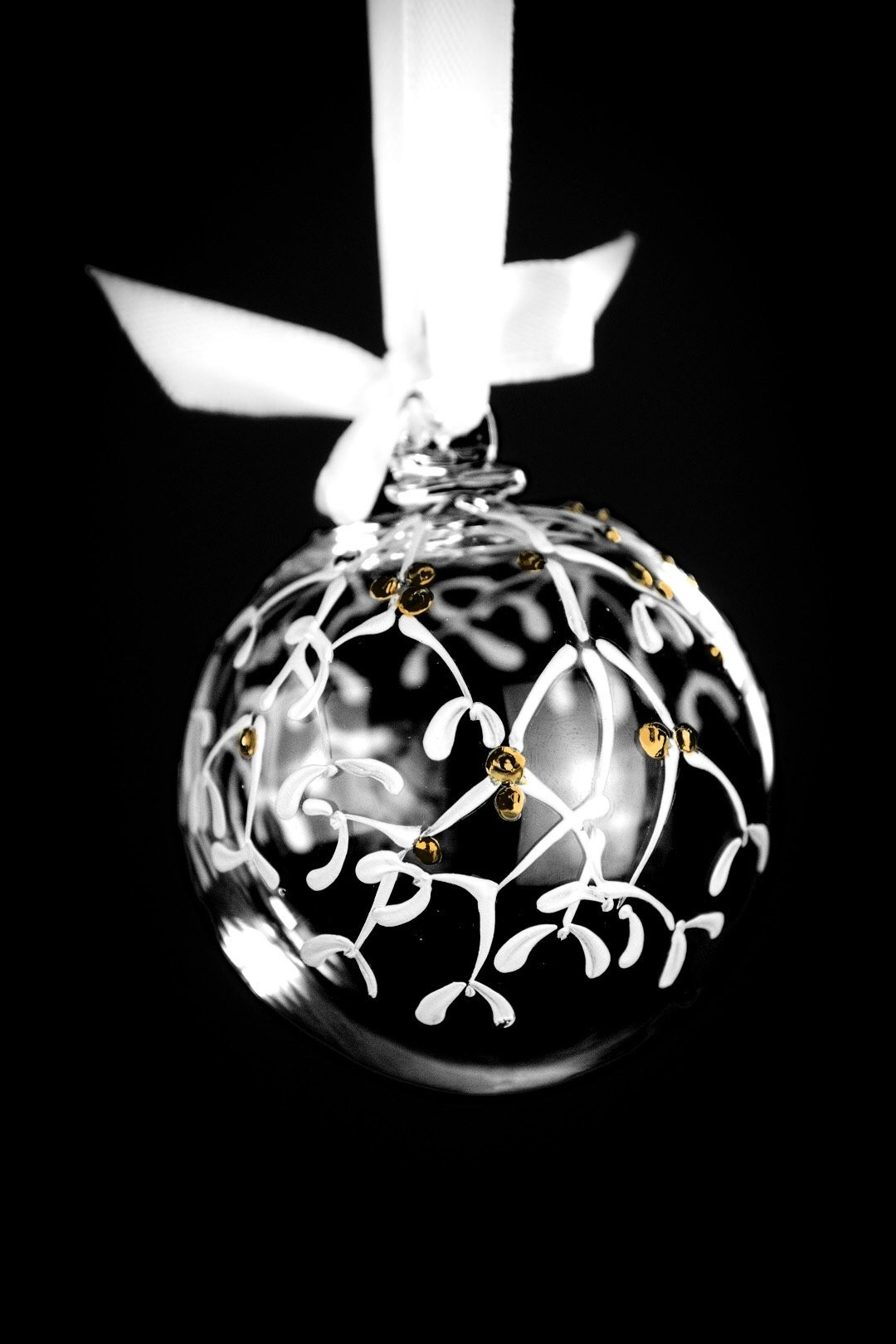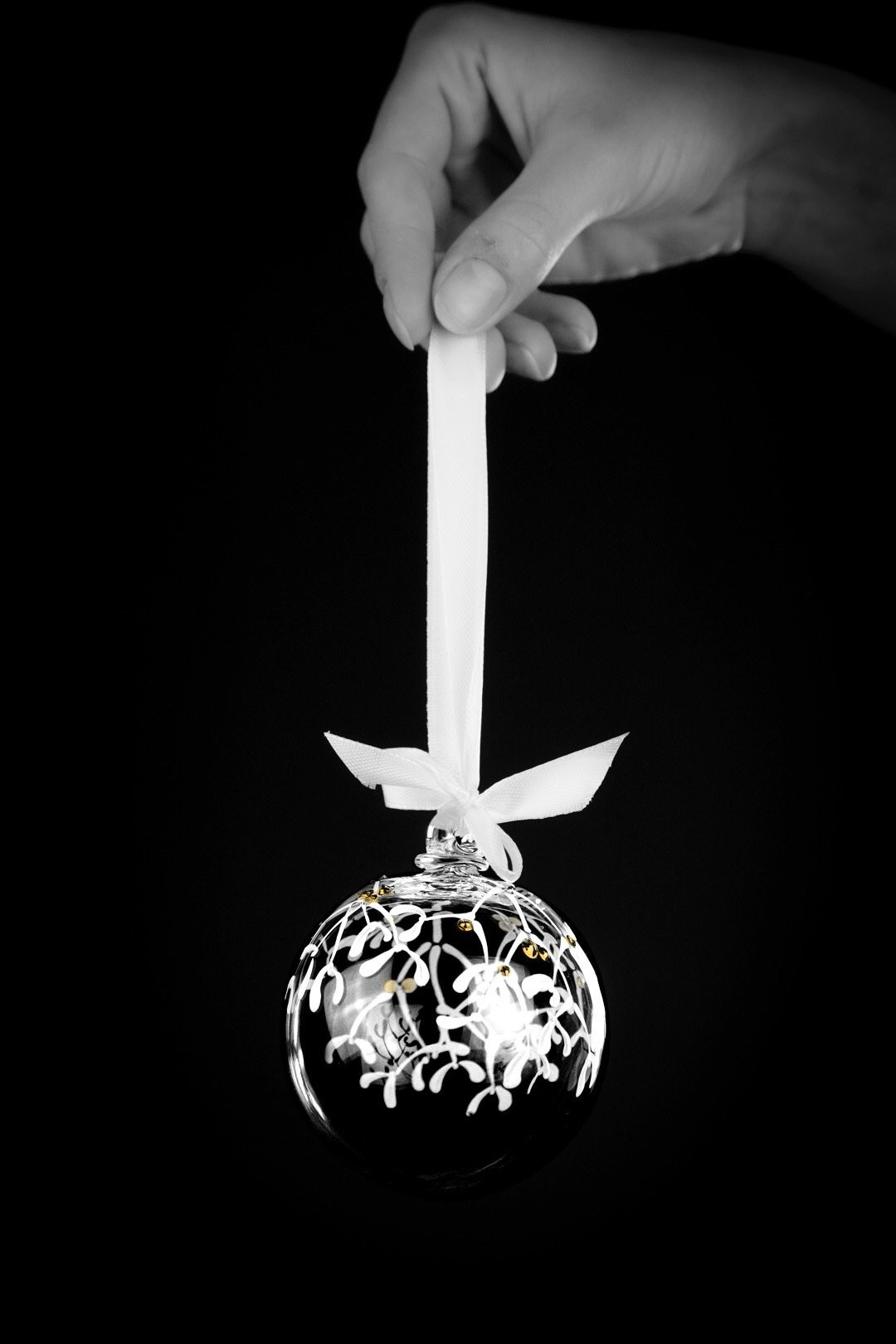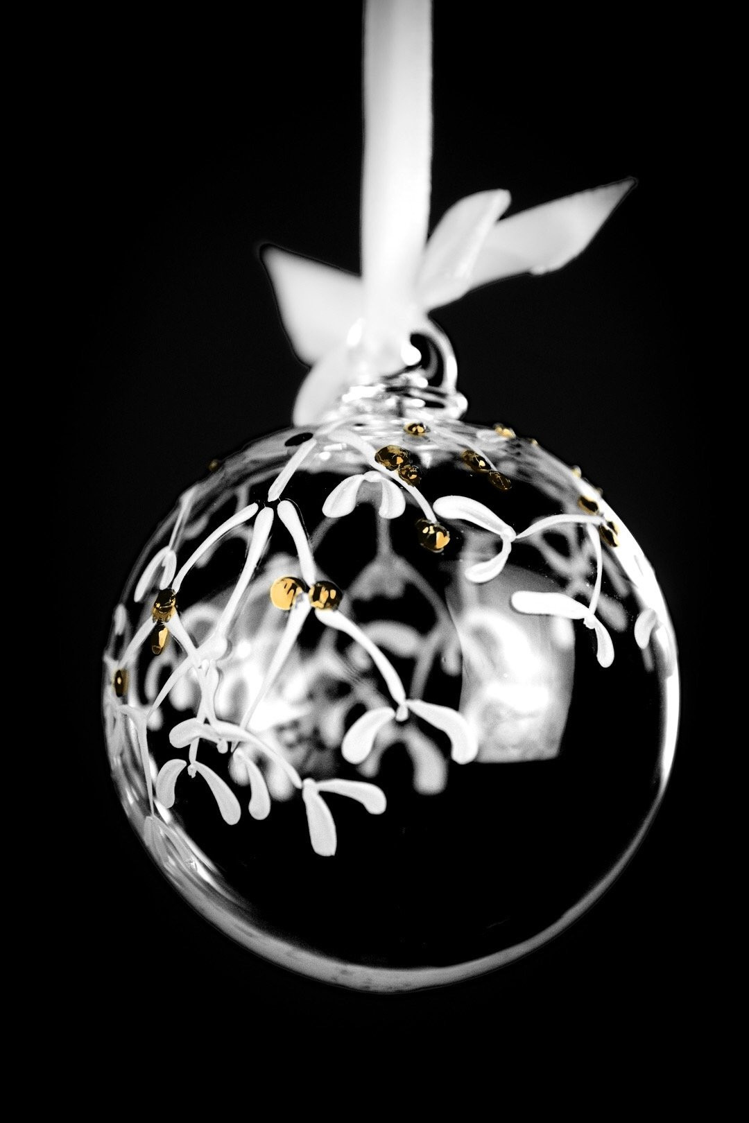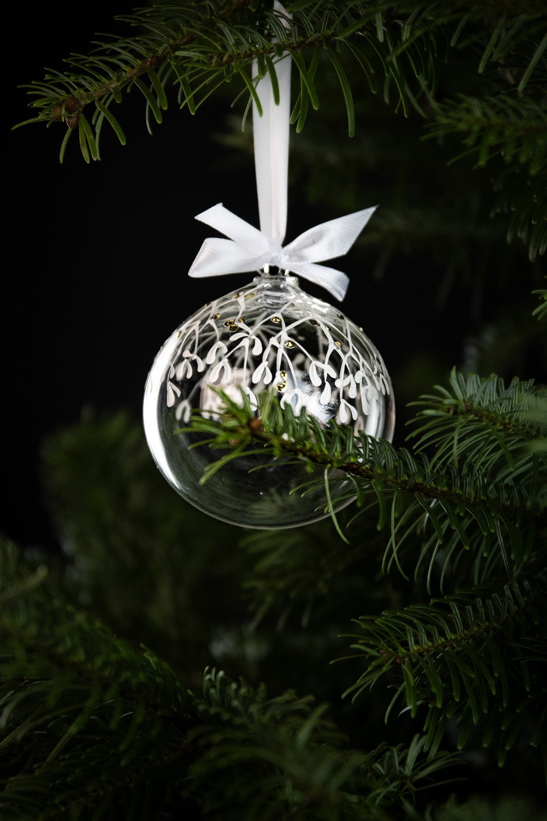 A hand-painted mistletoe sprig with golden details represents the beauty of Christmas. Enhance the holidays of joy, happiness, and shared moments with a jewel that will beautifully adorn your Christmas tree.