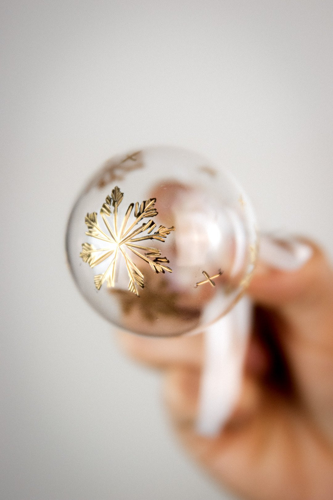 Delicate, unique, and above all enchanting — just like the very first snowflakes. Snowflakes that awaken the true Christmas spirit in each of us, and that is why we decided to capture this magic within a hand-blown crystal ornament embraced with genuine gold.