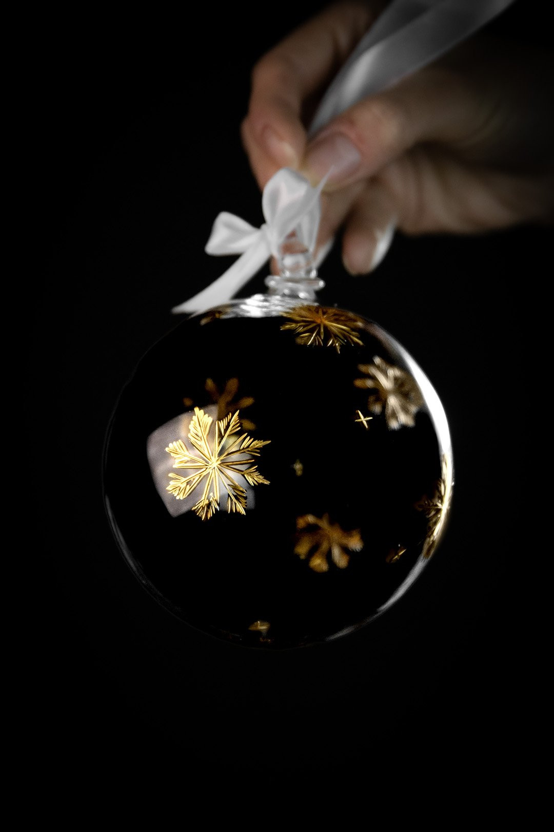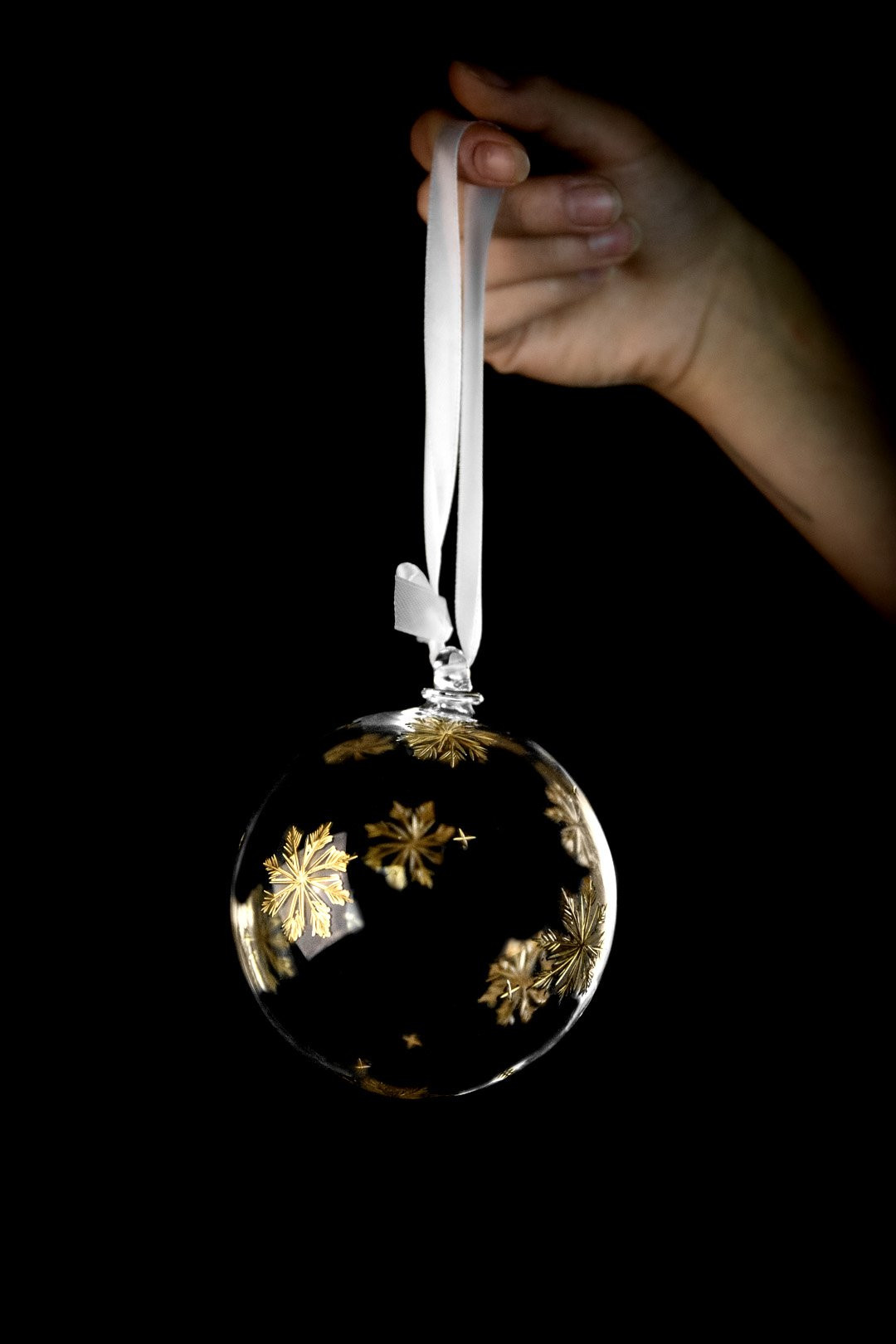 Delicate, unique, and above all enchanting — just like the very first snowflakes. Snowflakes that awaken the true Christmas spirit in each of us, and that is why we decided to capture this magic within a hand-blown crystal ornament embraced with genuine gold.