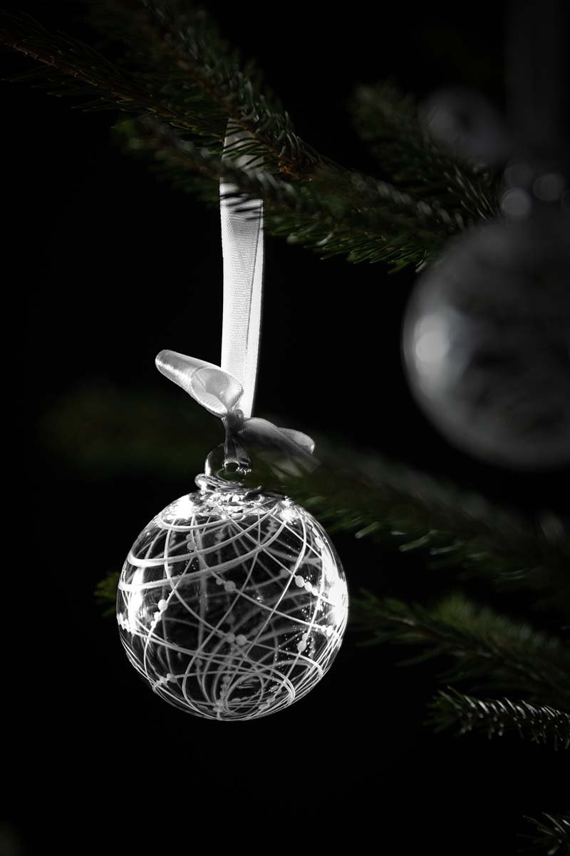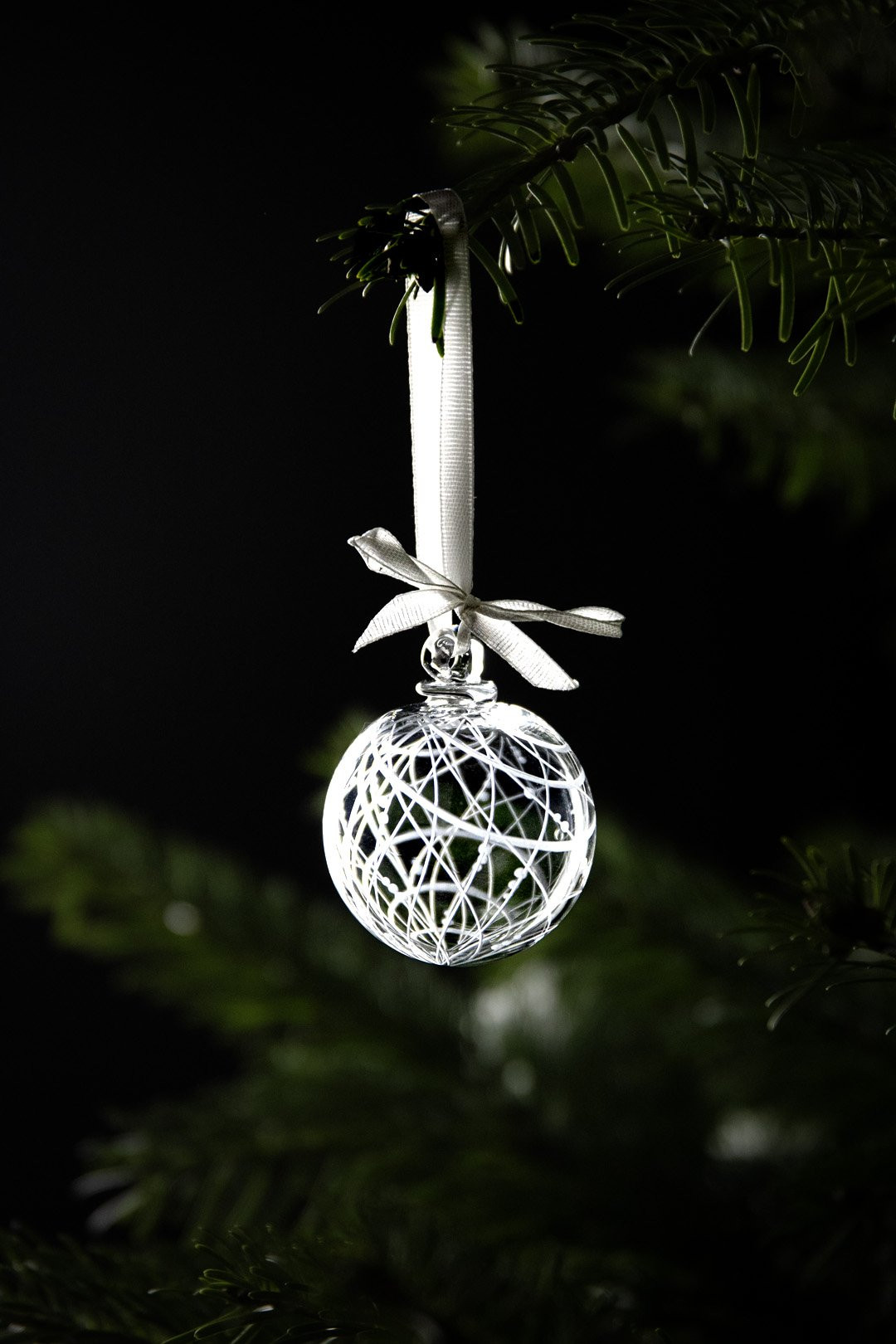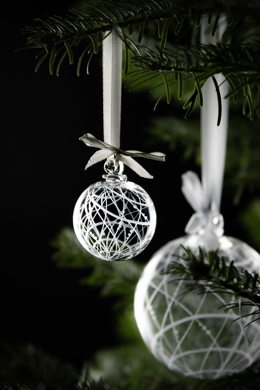 Hand-engraved lines embrace the Orbit crystal ornaments. Treat your Christmas to magical, otherworldly, and truly unique decorations.