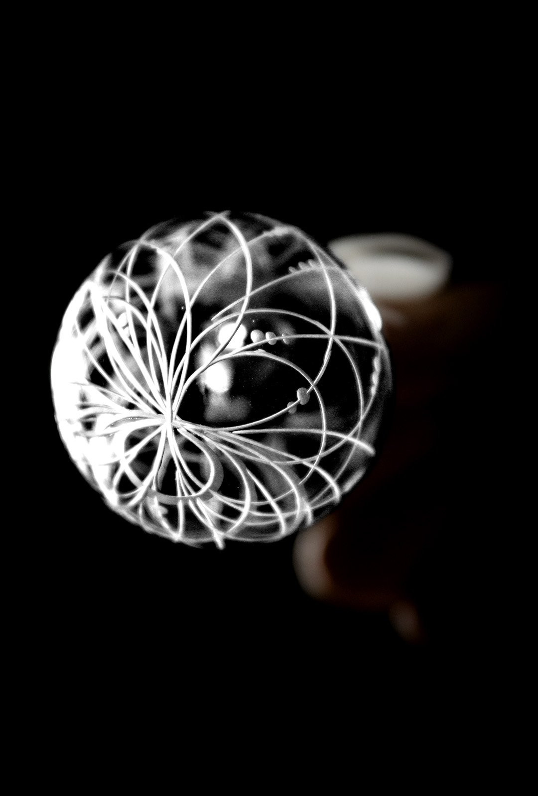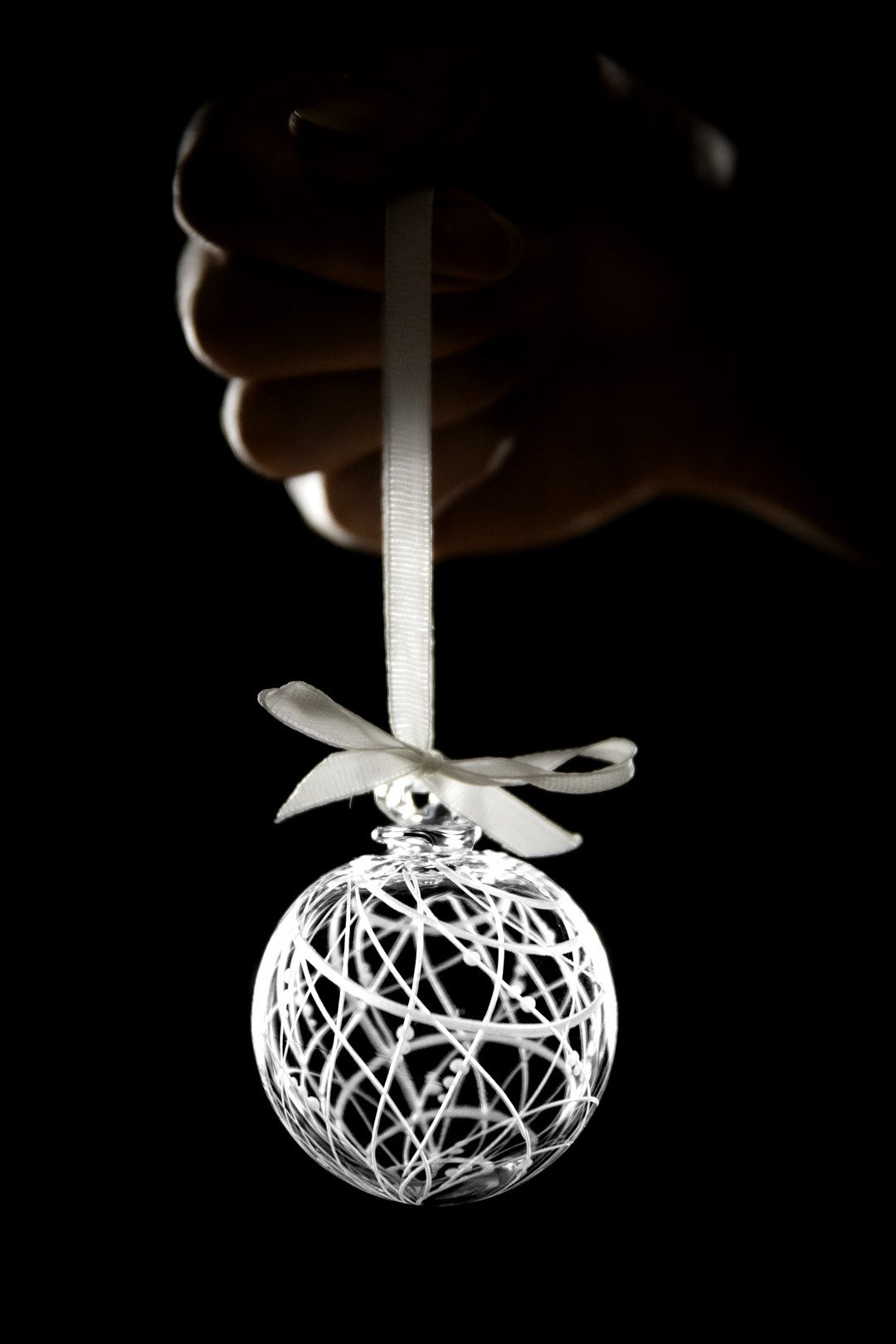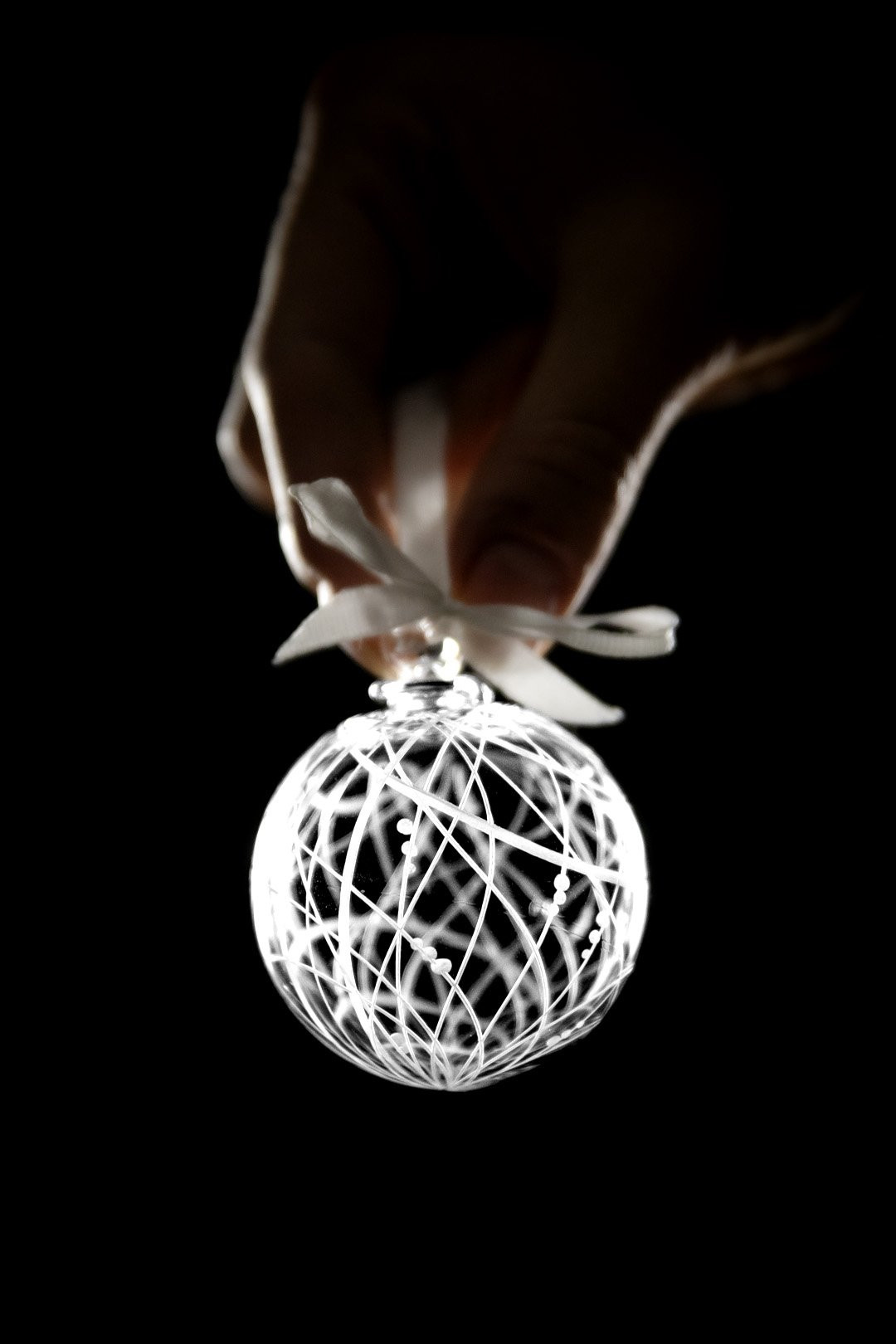 Hand-engraved lines embrace the Orbit crystal ornaments. Treat your Christmas to magical, otherworldly, and truly unique decorations.